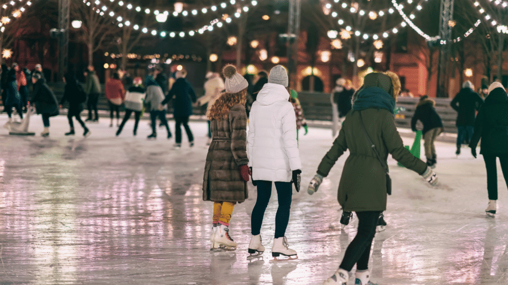 Ropa muy abrigada (especialmente por las noches), guantes si vas a patinar, batería externa para el móvil y calzado cómodo: vas a caminar mucho y las calles pueden estar húmedas o resbaladizas.